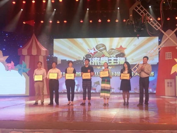 5月30日,由甘肃电视台少儿频道主办,MG冰球突破官网网站(新闻学院)协办的“未来星主播”甘肃省首届青少年电视主持人大赛颁奖典礼在甘肃广电总台演播厅举行。MG冰球突破官网网站2013级播音与主持艺术班刘津获得“青年组”一等奖,2012级播音与主持艺术班王柯乔、2013级播音与主持艺术班陈坤妤获得“青年组”二等奖,2012级播音与主持艺术班于禄获得“青年组”三等奖,学院获得优秀组织奖。共有21名学生参加了本次比赛的初赛和复赛,其中以上4人进入青年组决赛,青年组共有8人进入决赛。