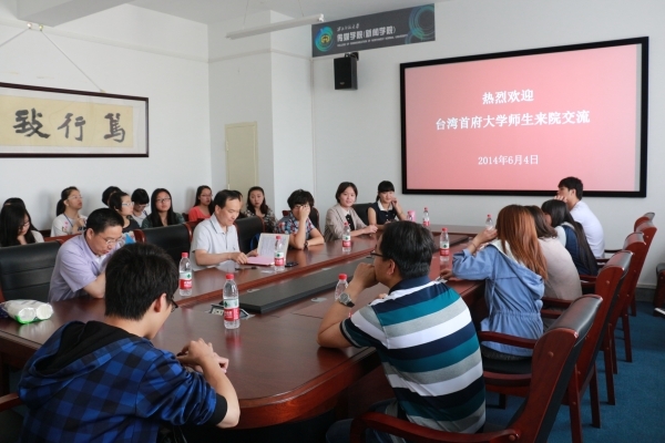 交流会上,党委书记符得团简要介绍了学校及学院的基本情况和亮点工作。他指出,首府大学在社会服务等方面有独到的工作理念,我们将学习他们先进的人才培养理念,为学生创造展示个人才华的机会,努力践行“传媒六艺”。他表示,学院欢迎台湾大学生来院交流、学习,学院会尽力为他们提供优越的学习条件。他鼓励传媒学子走出学院,走出师大,走向更广阔的平台。他勉励即将赴台交流的学生们要提前做好准备,明确自己将以怎样的精神风貌和态度去对方学校学习,回来之后怎样把自己学到的东西分享给同学。