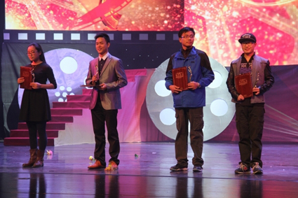 传媒学子在本次“伎乐天”短片大赛中斩获佳绩。2012级广播电视编导2班李洁琼的纪录片《三个和两个》荣获纪录片一等奖和最佳导演奖,2013级广播电视编导1班李宗伦与研究生郭宣淇合作拍摄的 《真情铸善举》荣获纪录片二等奖,2012级广播电视编导1班朱代伟的《我们的世界杯》、研究生刘玉的《那拉斜户》、研究生张哲伟的《天马之梦》、2013级广播电视编导2班慕思彤的《守望》获得纪录片类三等奖,其中2012级广播电视编导1班朱代伟的《我们的世界杯》还获得单项奖最佳创意奖,2013级广播电视编导2班张耀东的《Change the world》荣获最佳剪辑奖。同时,2013级广播电视编导1班孙同斌、孟祥梁的《艺考路上》、2012级广播电视编导1班王豪琦的《马背搬来的学校》、研究生朱正山、张安宁的《古老的文明之凉州天马》、2012级广播电视编导1班侯笑雪的《戏之迷路》、2012级广播电视编导1班穆亚男、李园的《身边》均荣获优秀奖奖。2012级广播电视编导1班张顺鑫的《Coins》荣获微电影类二等奖和最佳创意奖。2012级广播电视编导2班杨潇璇的《一步之遥》、2012级广播电视编导1班陈雪园、陈勇的《这条命,送给你》同样获得优秀奖。