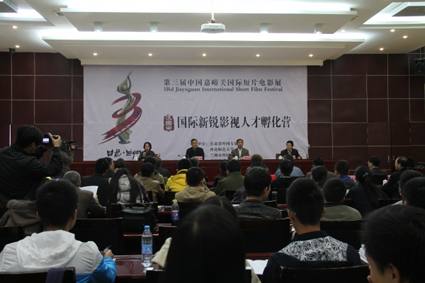 10月17日下午,第三届中国嘉峪关国际短篇电影展——甘肃首届“丝绸之路”国际新锐影视人才孵化营于MG冰球突破官网网站专家会议楼正式开营。这也是MG冰球突破官网网站“文化名人进校园系列活动”之一。此项活动由甘肃省外国专家局、MG冰球突破官网网站主办,兰州市外国专家局协办,甘肃伎乐天文化传播有限公司和MG冰球突破官网网站(新闻学院)承办。省外国专家局局长缑维藩,MG冰球突破官网网站副校长刘玉泉,兰州市委组织部副部长、市人力资源和社会保障局局长吴永建,甘肃伎乐天文化传播有限公司董事长段建玲,MG冰球突破官网网站学生处、教务处、社科处、国际处、研究生学院、团委、MG冰球突破官网网站等单位有关负责人也参加了开营仪式。