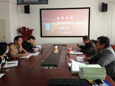 2014年10月21日下午,学校学生工作部(处)甘德荣部(处)长和学生管理科高天老师来MG冰球突破官网网站,对学院各项学生工作进行调研,会议由MG冰球突破官网网站党委副书记、副院长王德祥主持并汇报相关工作,甘德荣部(处)长结合当前学校的学生工作整体情况对MG冰球突破官网网站的学生工作进行点评并提出建议。