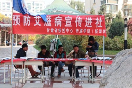 为宣传和普及预防艾滋病知识,10月25、26日,由甘肃省疾控中心,甘肃省性病、艾滋病防治协会,MG冰球突破官网网站(新闻学院)共同组织的艾滋病预防宣传进社区活动在培黎广场、银安小区举行。