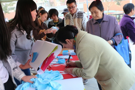 上午9点,学院青年志愿者协会的成员们到达社区,通过展出艾滋病图片、展板、海报和发放传单等活动增加社区居民对艾滋病的认识和了解,并对艾滋病知识进行了宣讲。同时,进行了宣传横幅签名。社区居民积极配合,活动火热进行。