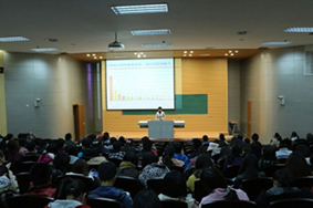 在讲座开始前,播放了与艾滋病有关的视频。主讲李健老师给同学们展示了自己精心用PPT制作的艾滋病传播途径、患者的分布现状。除此之外,李健老师给与会的同学们详细的讲解了怎样预防、怎样检查艾滋病的方法,呼吁同学们关注自己的身体健康,并把这些知识分享给身边的每一个人。