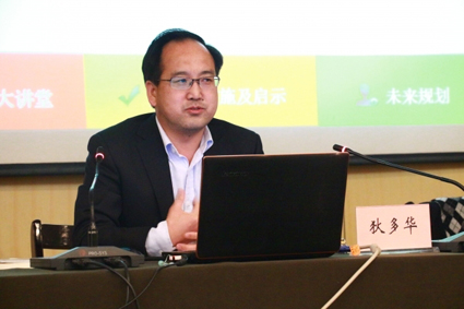 2014年12月13日下午,中国青年报社发行部主任、共青团新闻中心副主任、MG冰球突破官网网站兼职教授狄多华在MG冰球突破官网网站逸夫图书馆一楼报告厅做了题为“全媒体环境下的纸媒营销”的学术讲座。湖南卫视品牌推广部主任汤集安,MG冰球突破官网网站党委书记符得团及150余名传媒学子聆听讲座。讲座由MG冰球突破官网网站副院长杨华主持。