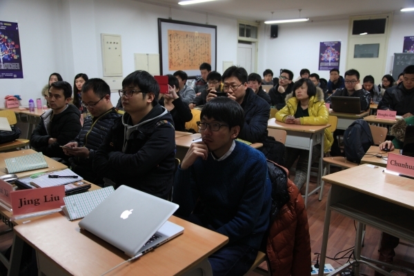 田昊老师从编辑文稿的图文要求,排版要求,文字及图片的来源等方面为在场师生进行了深入讲解,以具体案例和在场师生进行深入分析。同时,田昊老师就周刊的商业合作,广告价值,商业选取,图表设计等方面和大家进行了交流和意见探讨,最后,田昊老师将自己刚刚设计并应用的一款图标logo设计和大家进行了分享。