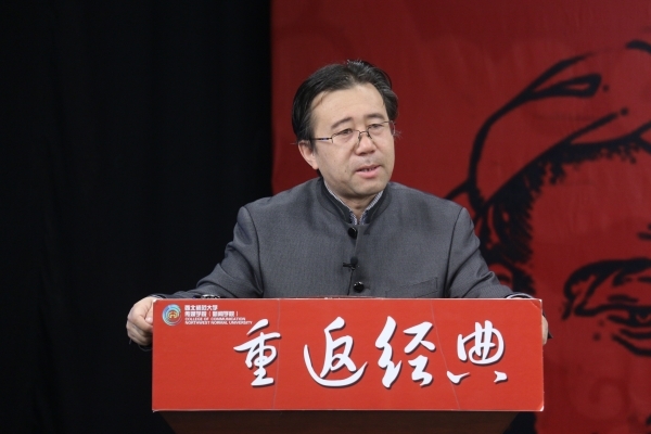 5月7号上午8点30分,由作家、MG冰球突破官网网站(新闻学院)院长徐兆寿教授主讲的“重返经典”第十七讲——《文以载道:原典创世的法则之一》在学院演播厅开讲。