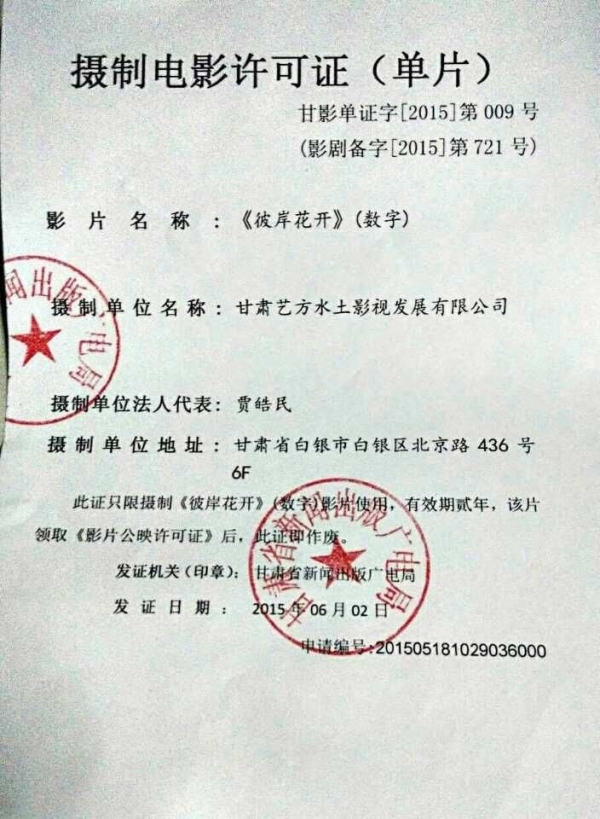 传媒学子张百强的电影《彼岸花开》经甘肃省新闻出版广电局审批备案已经同意拍摄,并有望颁发龙标,登陆院线上映。目前,影片已经基本拍摄完成,进入后期制作阶段。据悉,这是我省在校大学生首次获批拍摄电影。