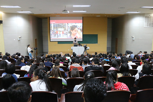 接着,王恺轩进行了“看中国,兰州行”实践活动汇报。本活动全名为“看中国·外国青年影像计划”,是由北京师范大学中国文化国际传播研究院发起并组织的文化交流项目。本次为第五期,有美、加等19个国家20所高校100名学生参加,其中“兰州行”由MG冰球突破官网网站(新闻学院)承办。之后,王恺轩对团队成员进行介绍并进行实践可行性分析,对实践过程进行详细介绍。接着,他提到本次实践活动的感悟:锻炼学生、文化传播、中外交流、互相协作、全面合作。最后,通过一段“关键词·一句话”视频介绍了参加本次实践活动的外国学生的感想。青年志愿者协会贾婧进行点评,她介绍了实践活动对于大学生的重要性,即“课堂教会学生的是知识,而社会实践活动培养学生的是学习的能力”。