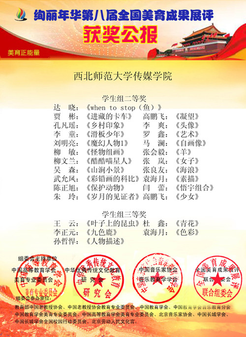 日前,第八届“绚丽年华·全国美育成果展”系列活动评选结果揭晓,冰球官网师生共28人获得各类等级奖项。