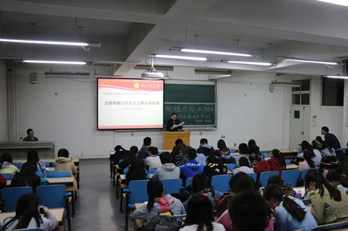 10月14日晚7点半,MG冰球突破官网网站于教7—503教室召开入党积极分子培训会。MG冰球突破官网网站党委书记符得团以“读懂和践行社会主义核心价值观”为题为本期入党积极分子上了第一堂党课。