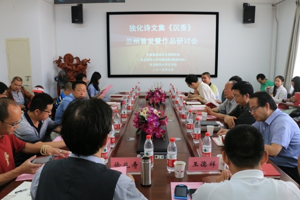 7月18日上午,“独化诗文集《沉香》首发式暨作品研讨会”在西北师大MG冰球突破官网网站举办。会议由甘肃省当代文学研究会、MG冰球突破官网网站(新闻学院)、MG冰球突破官网网站文学院联合主办。甘肃省当代文学研究会会长、西北师大MG冰球突破官网网站院长徐兆寿主持了会议。原甘肃省当代文学研究会会长、原MG冰球突破官网网站文学院院长彭金山,甘肃省文联理论室主任、甘肃省当代文学研究会副会长张存学,西北师大MG冰球突破官网网站教授、甘肃省当代文学研究会副会长杨光祖,甘肃华城集团总裁、文化学者葛学文,甘肃康瑞医疗科技有限公司总经理张卫东,甘肃电视台公共频道总监、诗人姚承德,以及来自甘肃省当代文学研究会、MG冰球突破官网网站、兰州交通大学等省内高校的专家学者及本科生、研究生五十余人参加了会议。