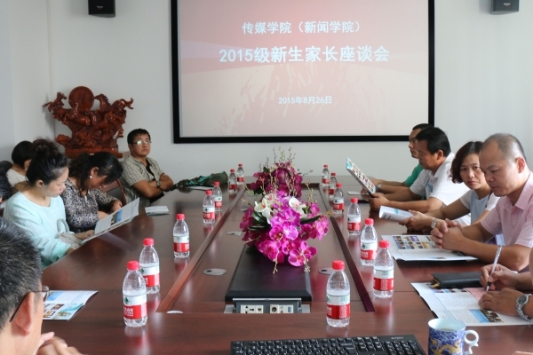 8月27日下午四点,MG冰球突破官网网站(新闻学院)2015级新生家长座谈会在学院办公楼三楼310室举行。学院党委书记符得团,党委副书记、副院长王德祥,团委书记赵洁、辅导员张排与部分新生家长共聚一堂,为学生家长解答了关于学生学习、就业等一系列问题。
