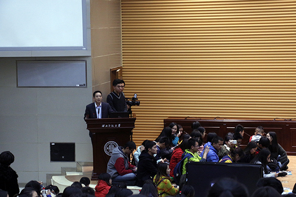 11月18日下午2点半,MG冰球突破官网网站于毅然报告厅举行“传媒六艺”系列活动之“六艺读书会”:大冰百城百校畅聊会。活动开场前,毅然报告厅前面,学生早已排起长长的队伍在等待着大冰的到来。活动开始时,整个毅然报告厅台上台下站满了学生,场外还有400余名学生在等候签名,场面火爆。学院悉心组织,活动现场秩序井然。来自我校及兰州其他高校的1000余名热情粉丝与大冰共同分享读书乐趣、畅聊成长精彩。活动由MG冰球突破官网网站党委副书记、副院长王德祥主持。