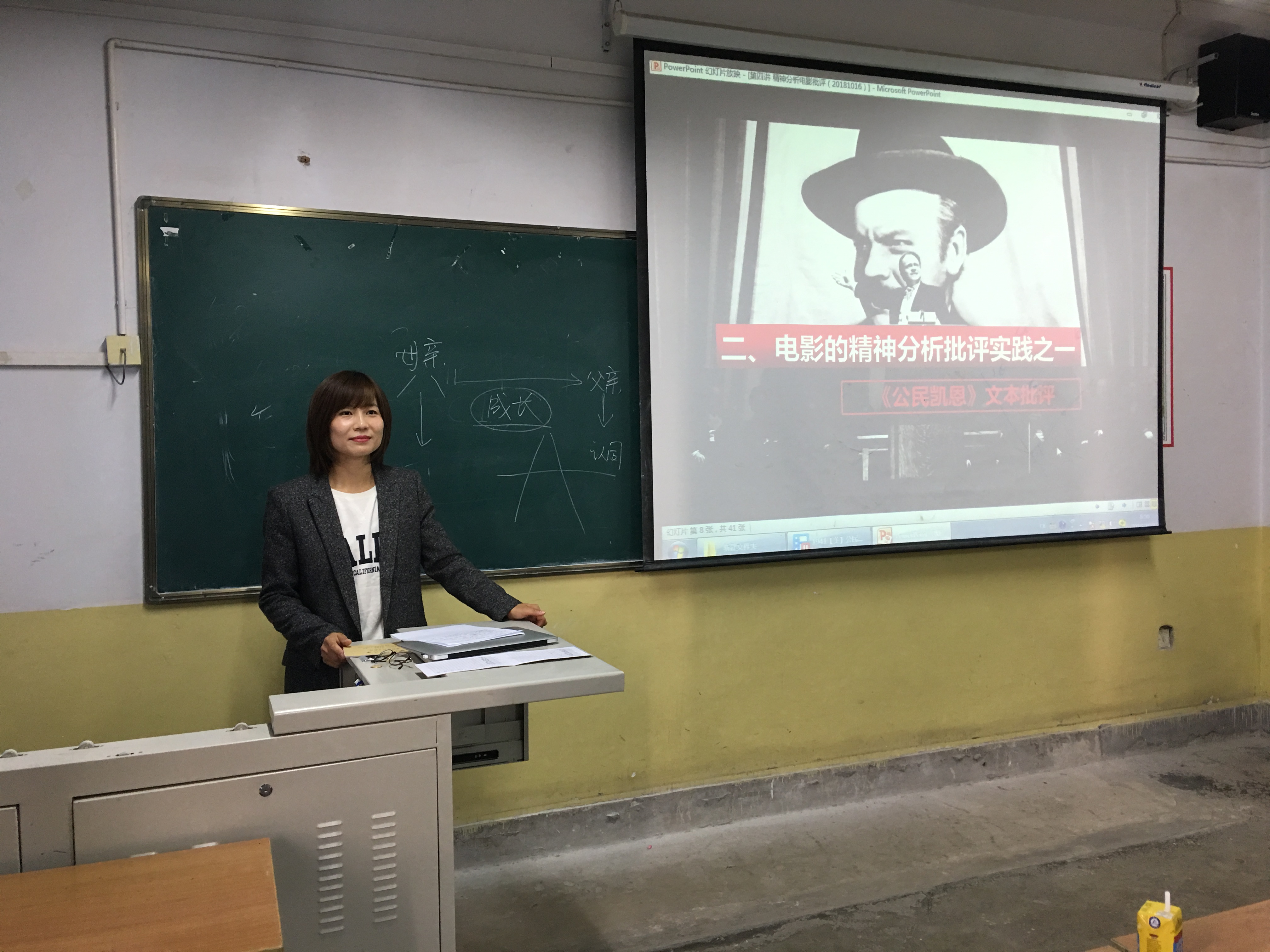 赵老师讲授的是内容是“电影的精神分析理论与批评”,整堂课包括理论学习与批评实践两部分。赵老师首先解释了精神分析的研究目的是对人类无意识世界的认知,介绍精神分析对电影的介入历史,解释电影的精神分析理论的研究主题和关键词。并通过提问了解学生的理解和掌握情况。之后,赵老师以影片《公民凯恩》为例讲授如何应用理论进行文本批评实践。通过对影片的细致分析,她将影片的精神分析主题分为两条线索,首先深入解释了影片叙事中凯恩童年的俄狄浦斯式创伤及其影响;进而对凯恩的恋物癖行为和心理在影片中的表达做出阐释。本次课堂教学既有对理论深入浅出的讲解,同时对如何将理论应用于批评实践做出很好的示范。课程教学的思路和方法注意适度提升高年级本科学生理论素养,并强化和夯实实践技能,引导学生独立思考和积极讨论。