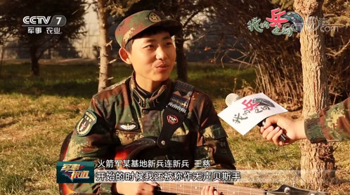12月2日,在中央电视台的军事报道栏目中,一篇《我的兵之初!“青柠乐队”唱响青春梦想》的报道,描写了火箭军某基地新兵连有一支“青柠乐队”,乐队中的女兵们用青春激情奏响军营梦想,传媒学子王慈作为乐队的一员接受了采访。