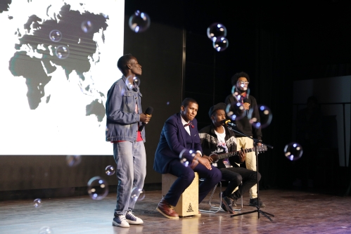 京剧是中国文化传统的重要表征之一,2016级广播电视编导1班的胡菁仪表演京剧选段《霸王别姬》,将国粹艺术带到舞台。在初入大学的新生看来,社团纳新的“百团大战”为校园的一个奇特场景。2018级新闻班同学带来小品《百团大战之宿舍风云》,巧妙地将众多社团纳新的“盛况”搬上舞台。随后,MG冰球突破官网网站苏丹留学生阿布和他的伙伴带来歌曲串烧,语言不通、肤色不同并不影响现场观众们的热情,一首首耳熟能详的歌曲赢得现场观众的热烈回应。朗诵节目《秋瑾》带观众走进了民主革命志士秋瑾悲壮的一生。播音专业同学们具有感染力的嗓音和激昂的表演将秋瑾这一舞台形象塑造得十分鲜活。