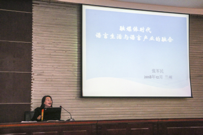 厦门理工大学广播电视系教授、美国华盛顿州西雅图市普吉湾大学亚洲中心研究员张军民从融媒体时代中的大众语言生活方式、现象级电视节目的语言产业与语言生活以及如何在语言产业里更多地融入高质量的语言生活三个方面入手,对《融媒体时代语言生活和语言产业的融合》这一主题展开讲解。