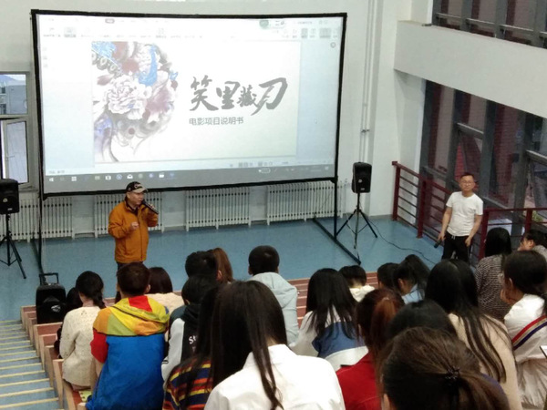 观影开始前,兰州电影制片厂总经理邵通对此次活动进行了简单发言,对《笑里藏刀》的导演做了简单介绍。观影过程中,老师和同学们被电影中的一幕幕剧情所触动,也不时被电影中的场景所感染而发出一阵阵欢笑声。作为当天活动的重头戏,《笑里藏刀》获得师生们的热烈掌声。