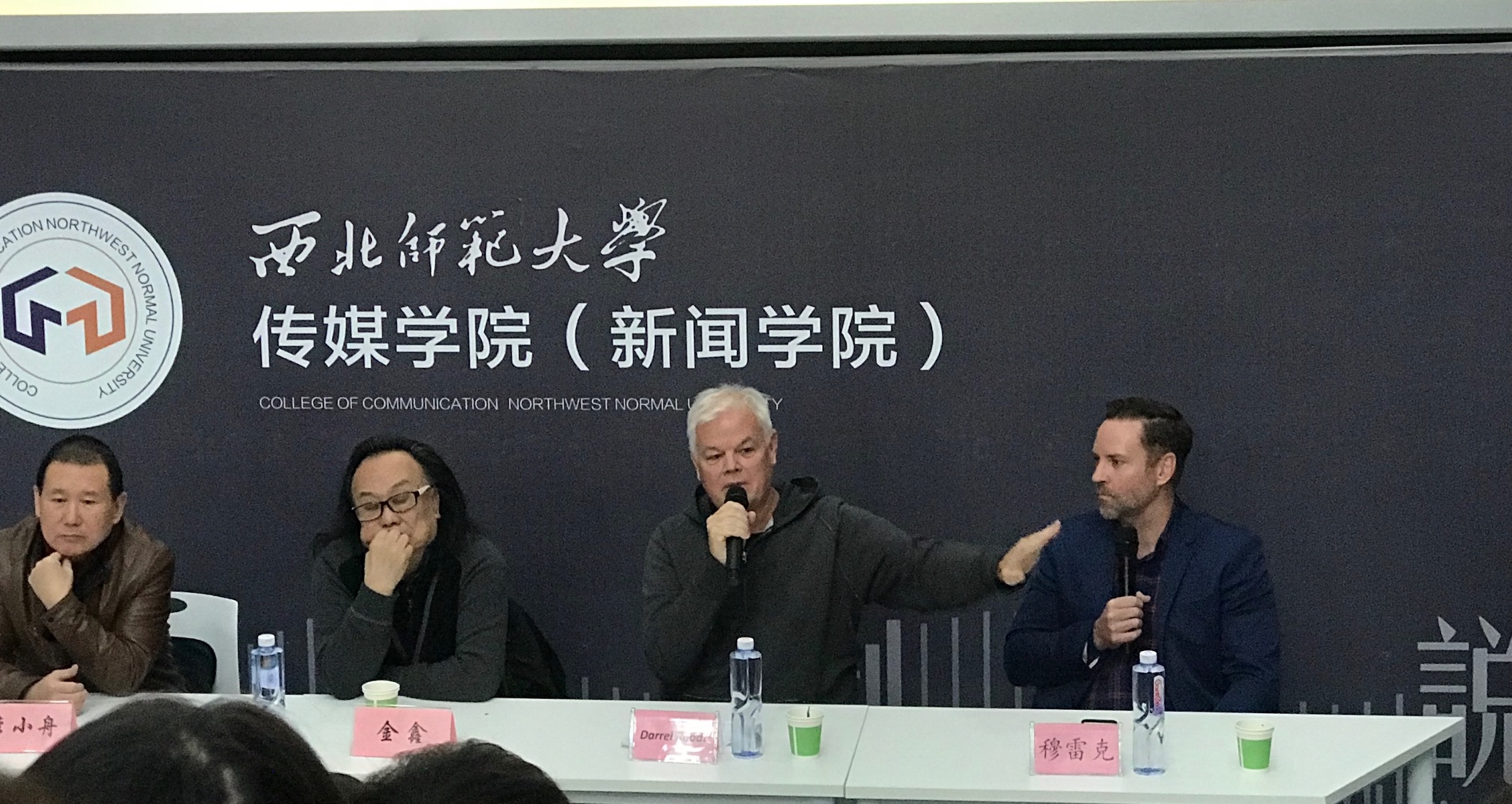 12月13日下午两点,由MG冰球突破官网网站(新闻学院)主办的《中南电影的发展与合作》学术报告于文科实训楼六艺影视厅举行。世界级南非导演达雷尔·鲁德(Darrell Roodt)为报告嘉宾,著名校友金鑫先生、省委宣传部调研员李小舟先生、翻译穆雷克先生、MG冰球突破官网网站副院长冯晓临老师出席讲座,MG冰球突破官网网站一、二年级全体硕士生参加活动。