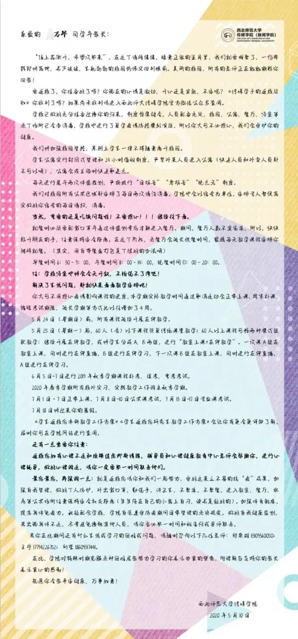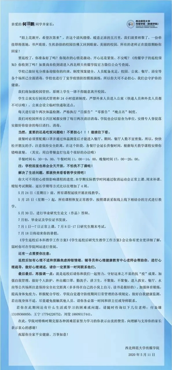 返校学子表达了对学院暖心之举的感谢,四年的时光转瞬即逝,既意味着结束,更是一段新征程的开始!希望毕业年级的同学能给自己的大学生活画上一个圆满的句号。木铎声声盼君归,我们已经做好充分准备,盼君归来!