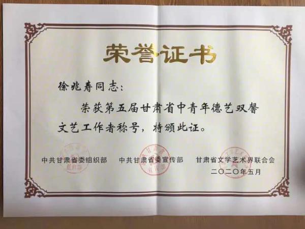 5月25日,甘肃省文联五届九次全委会在兰州召开,MG冰球突破官网网站徐兆寿教授荣获“第五届甘肃省中青年德艺双馨文艺工作者”称号,受到省委组织部、省委宣传部、省文联的联合表彰。