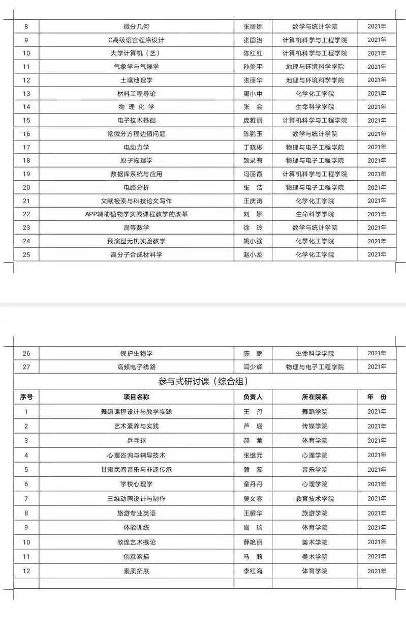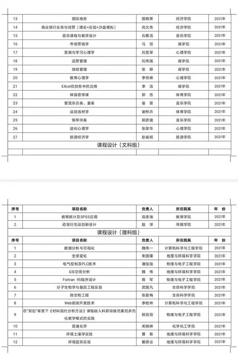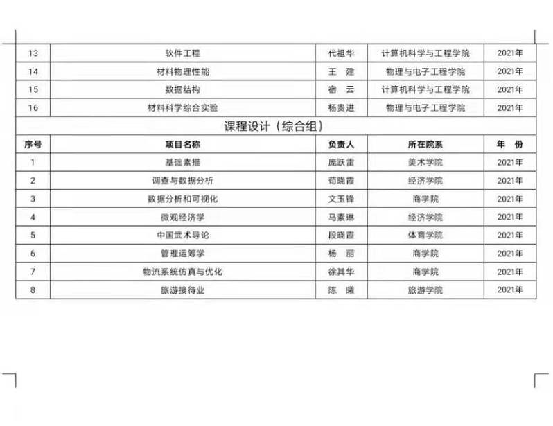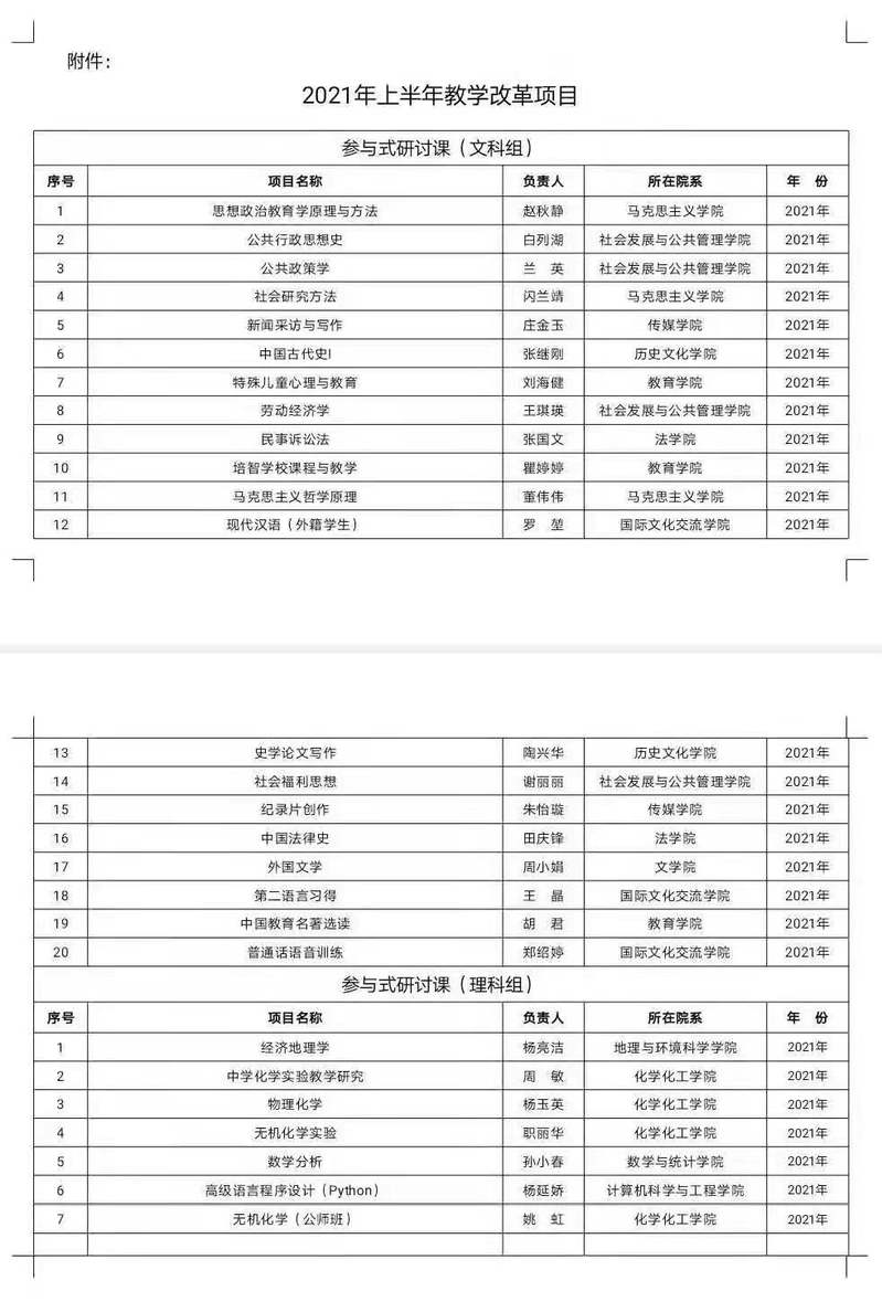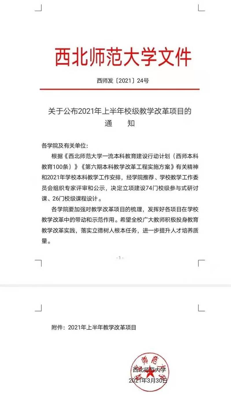 关于公布2021年上半年校级教学改革项目的通知