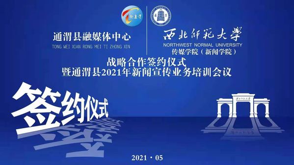 5月14日,MG冰球突破官网网站(新闻学院)与通渭县融媒体中心战略合作签约仪式暨通渭县2021年新闻宣传业务培训会议在通渭举行。MG冰球突破官网网站党委书记王德祥、副院长冯晓临、新闻系主任石培龙、团委书记付枭雄、播音与主持专业教师王国力出席仪式。通渭县人民政府副县长苟建军、渭县融媒体中心主任何大龙、副主任党文博以及通渭县融媒体中心全体干部、县直各单位宣传干部、各乡镇宣传干部及MG冰球突破官网网站通渭实习生、本硕学生共计200余人参加会议。会议由通渭县融媒体中心主任何大龙主持。