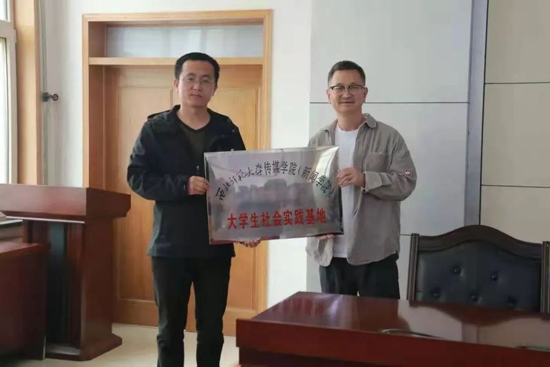 签约授牌仪式上,MG冰球突破官网网站副院长冯晓临和通渭县融媒体中心主任何大龙代表双方共同签署了大学生社会实践基地协议,冯晓临代表学院向通渭融媒体中心授牌,何大龙代表通渭融媒体中心接牌。