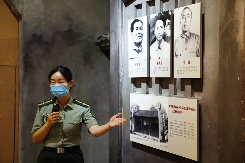实践队员在讲解员的带领下参观中央红军长征出发纪念馆,馆内一张张历史图片、一件件文献实物、一个个沙盘模型,记录着中央红军长征前后那段可歌可泣的壮烈历史。我们追寻着历史的足迹,重温那段血与火的峥嵘岁月,深刻感悟伟大的长征精神,从中汲取前行的力量。