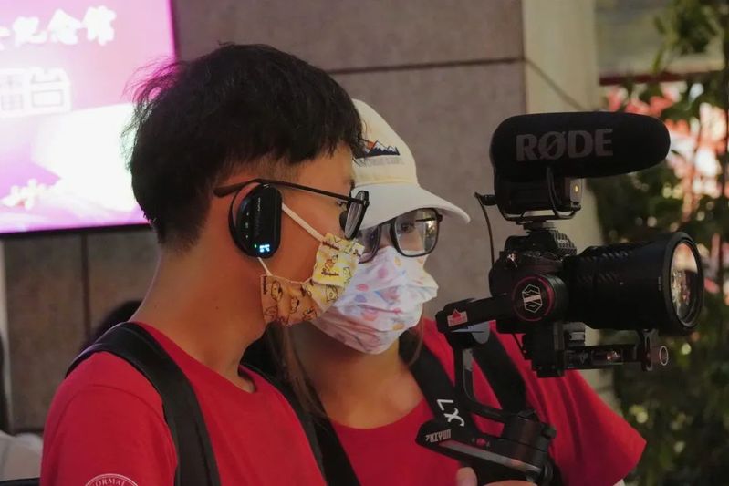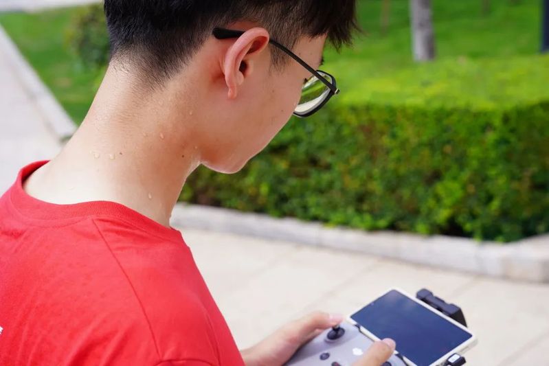7月24日于都市最高气温为35℃,即便室外温度很高,实践队员们仍然克服困难,认真完成实践调研任务。图为实践队员楚玉珂、刘富坤、宋未涵正忙碌地进行拍摄工作,汗水已经浸湿了他们的衣襟,汗珠从脸上滑落。