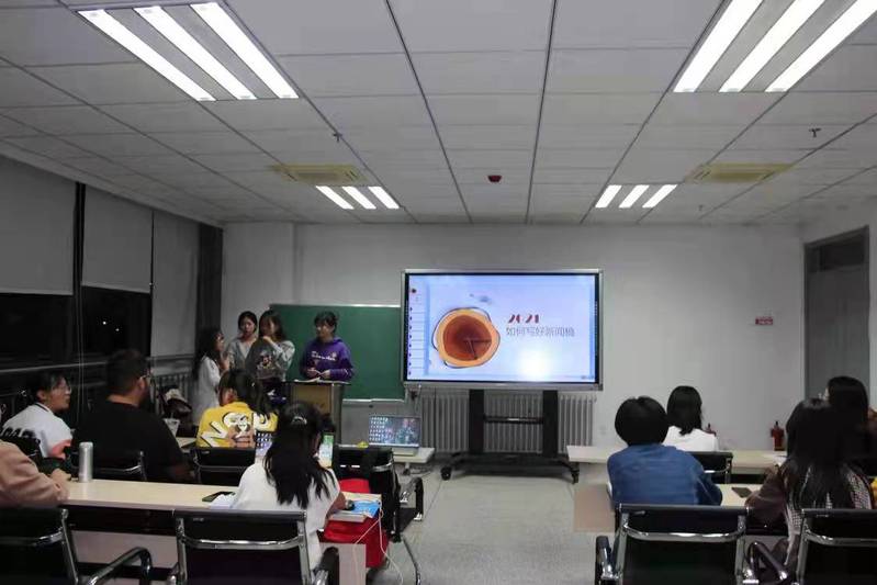 2020级广播电视编导3班陈安琪首先从光圈、快门、景深、iso等方面,简要介绍相机的基本使用技巧。她围绕图片的构图、透视关系展开进一步讲解。同时向同学们推荐Snapseed、醒图等基础软件,用来对图片进行处理。最后她强调在拍摄前,要注重与采编人员的沟通,以确保图文相符。