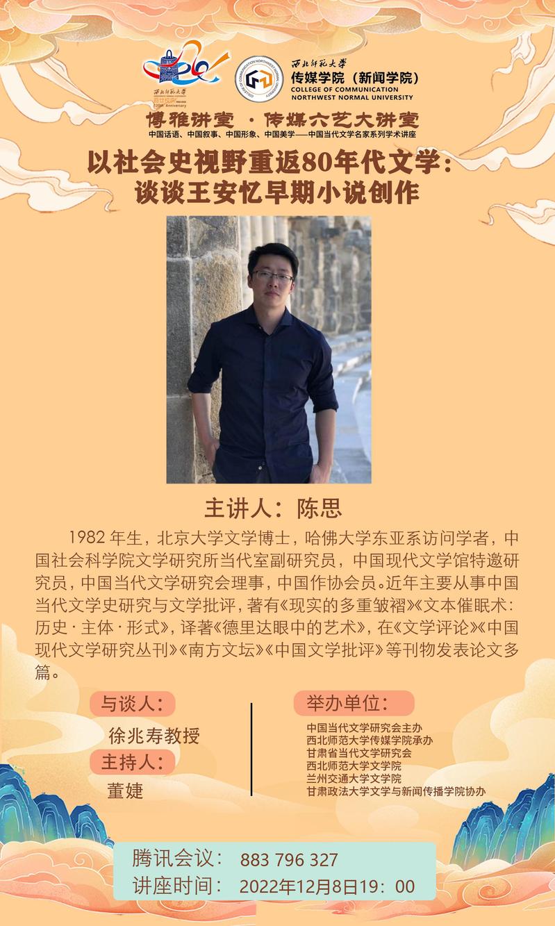 传媒六艺大讲堂|中国社会科学院文学研究所副研究员陈思为冰球官网师生作线上学术报告