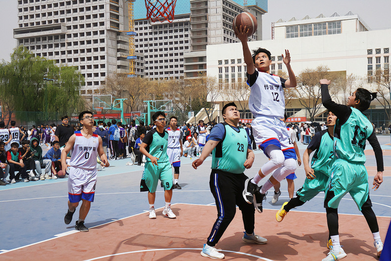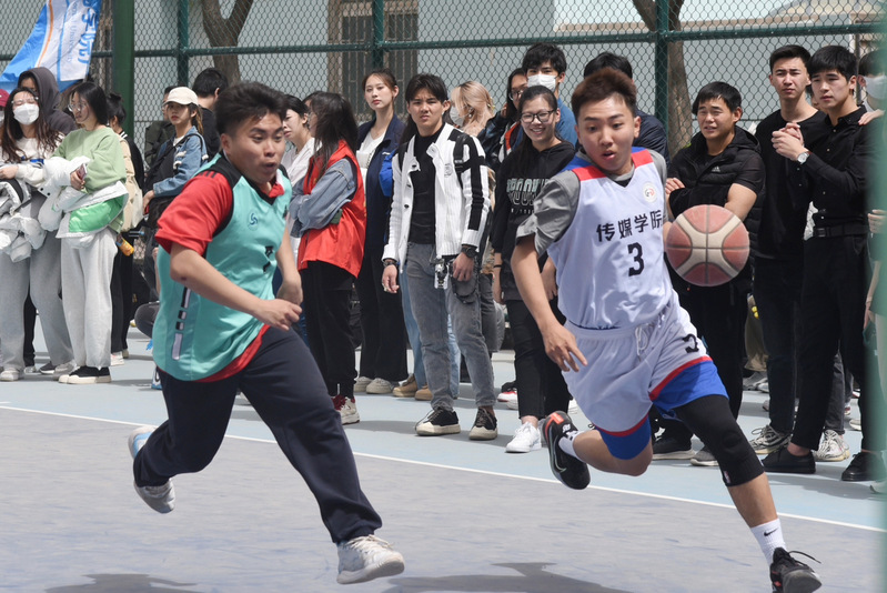 兰州的四月,中午艳阳高照,热浪滚滚,但篮球场上的传院健儿们,依旧激情饱满、斗志高昂,伴随着同学们的呐喊助威声,为了学院荣誉而英勇拼搏。