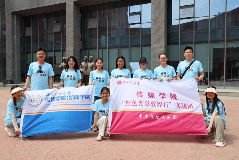 MG冰球突破官网网站研究生“红色光影·敦煌行”团队的暑期实践活动于2024年7月15日正式出行。9名2023级戏剧与影视学学硕班研究生在唐圆鑫老师的带领下,于MG冰球突破官网网站629教室开展活动前的安全会议,并在楼下拍摄出发视频和团队照片,为此次活动正式拉开帷幕。一群怀揣着对敦煌历史文化深厚情感与影视艺术无限热爱的研究生学子,踏上了前往敦煌的旅程,开启了为期一周的深入探索与学习之旅。